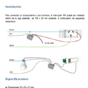 - Viene configurado de fábrica para que funcione cuando detecte cambios en la entrada auxiliar, de forma tal que se puede conectar a una tecla de luz existente y comandarla en forma manual.